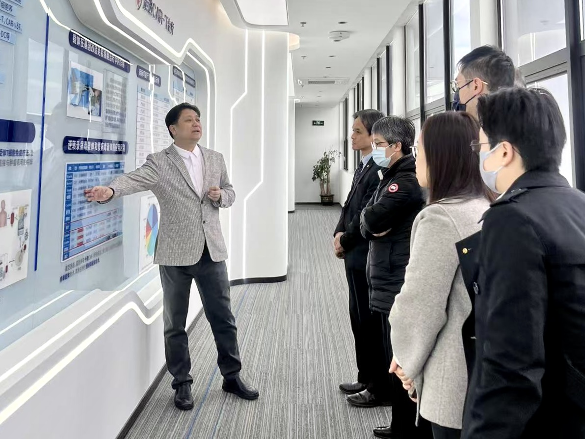 On the morning of December 16, a delegation from the General Office of the Hospital Authority of the Hong Kong Special Administrative Region, including Dr. Xie Dazhi , Senior Administrative Manager of the Integrated Clinical Services Department, Ms.Ou Kunye, Manager of the Clinical Services Department, Ms.Yang Huimin, Senior Pharmacist of the Hospital Authority, Dr. Chen Shouren, Consultant in Hematology at Queen Mary Hospital, The University of Hong Kong, Dr. Wang Shaoming, Consultant in Hematology at Prince of Wales Hospital, The Chinese University of Hong Kong, and Dr. Liu Shimin, Consultant in Hematology at Queen Elizabeth Hospital, visited Shenzhen Cell Valley for an exchange visit. The delegation was warmly received by our company's Chairman Professor Shi Yuanyuan, Chief Scientist Professor Wang Jianxun, Business Director Wei Zheng, Chairman's Assistant Fu Yuchen, Marketing Director Sun Rui, and Director of the General Office Wang Lu.